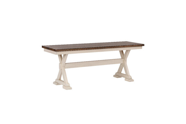 Complete with a solid wood bench for added versatility and seating options, this set is sure to enhance your dining experience with it's durability and timeless appeal.