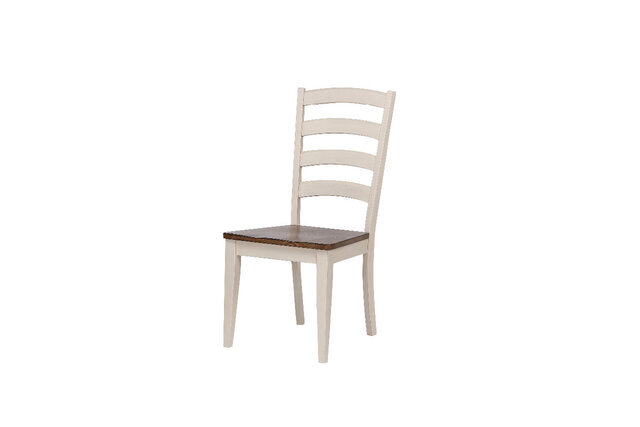The solid wood table top, with solid shaped seats that have ladder-style back design offer a classic yet cozy feel for your dining space.